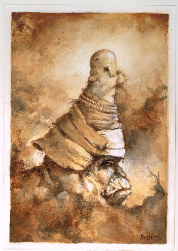 Die Zeichnung ist mit wiederablösbarem Galerieklebeband, auf 300g weißem Bristolkarton im Format 50 x 40 cm präsentiert und wird mit einer schützenden Cellophan-Folietüte geliefert.